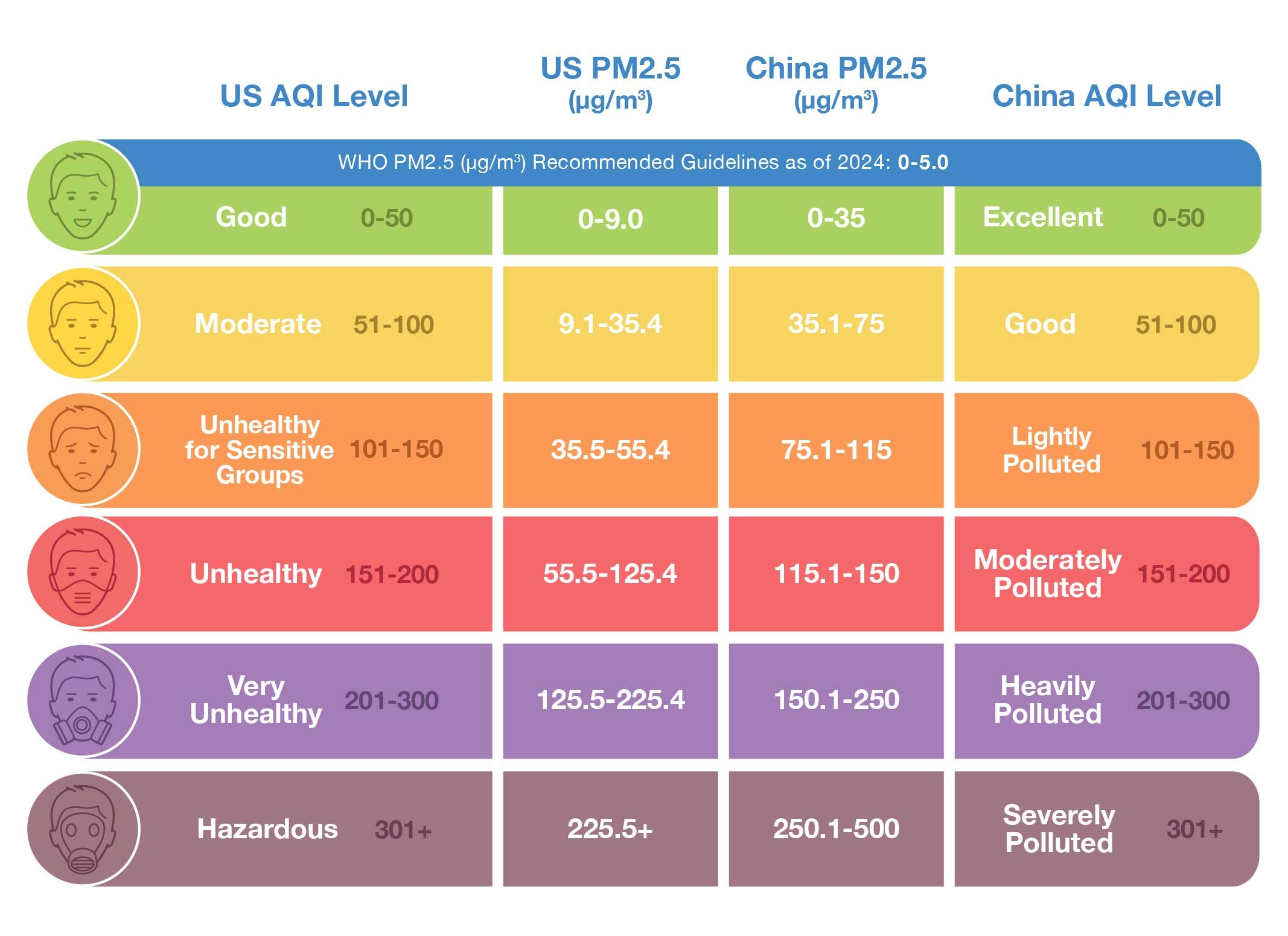 For example, U.S. AQI⁺ is based on the U.S. Environmental Protection Agency's (EPA) AQI guidelines but enhances them with hourly updates to reflect current air quality conditions. Similarly, CN AQI⁺ follows China's official reporting standards but also provides more real- time updates using hourly averages. This helps ensure that users are always receiving the most relevant information regarding air quality.
